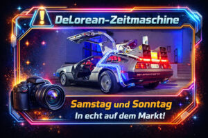 Ein Highlight wird in jedem Fall der originalgetreue DeLorean (DeLorean Motor Company) aus den berühmten Filmen sein. Dieses Kultfahrzeug mit allen wichtigen Funktionen steht Samstag und Sonntag mitten auf dem Markt und wird als Fotopunkt garantiert für maximale Aufmerksamkeit sorgen.